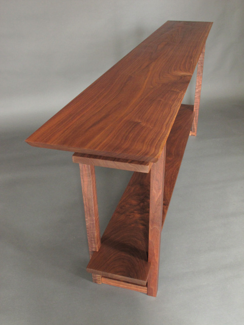 This long narrow table is a gorgeous solid wood console that is perfect for a hall table, entryway table or a table behind the sofa. In the dining room, this console table would be a lovely, modern sideboard or buffet table. We've added an extra shelf to our popular Classic Table design for even more options for display and storage. With our unique hand-cut joinery and premium wood selections, this beautiful piece will be the highlight of your home decor.